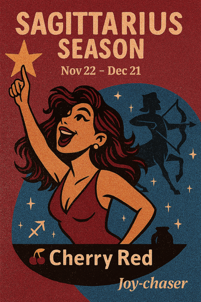Sagittarius season is supposed to remind you that joy is a compass. It’s not a detour. Be bold. Be great. Be heard. Be seen. So, this month, follow the compass. Follow it loudly, colorfully, and with cherry bomb confidence. And if it all goes sideways for some reason, remember to laugh about it, learn from it, and take the leap again. That’s the way a Sagittarius does it.