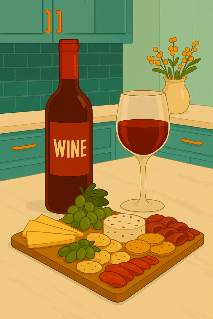 On easier days it’s some sort of herbal soothing tea. On especially chaotic days it’s wine and girl dinner. I start by pouring a hefty glass of a sweet red wine and taking a deep breath. I’ll put on my current favorite real housewives show and make sure everyone in my house knows it’s “pretend like Coco isn’t here” time. Then I rummage through the fridge for all the “little picking foods” I can find. Usually it ends up being cheese, sliced meat, pickles, tomatoes, cucumbers, celery, dips, nuts, etc. as long as it’s as savory as possible I’ll pick at it. Anything that helps me create my own little charcuterie plate and helps me realize…I am done hustling and now I’m savoring.