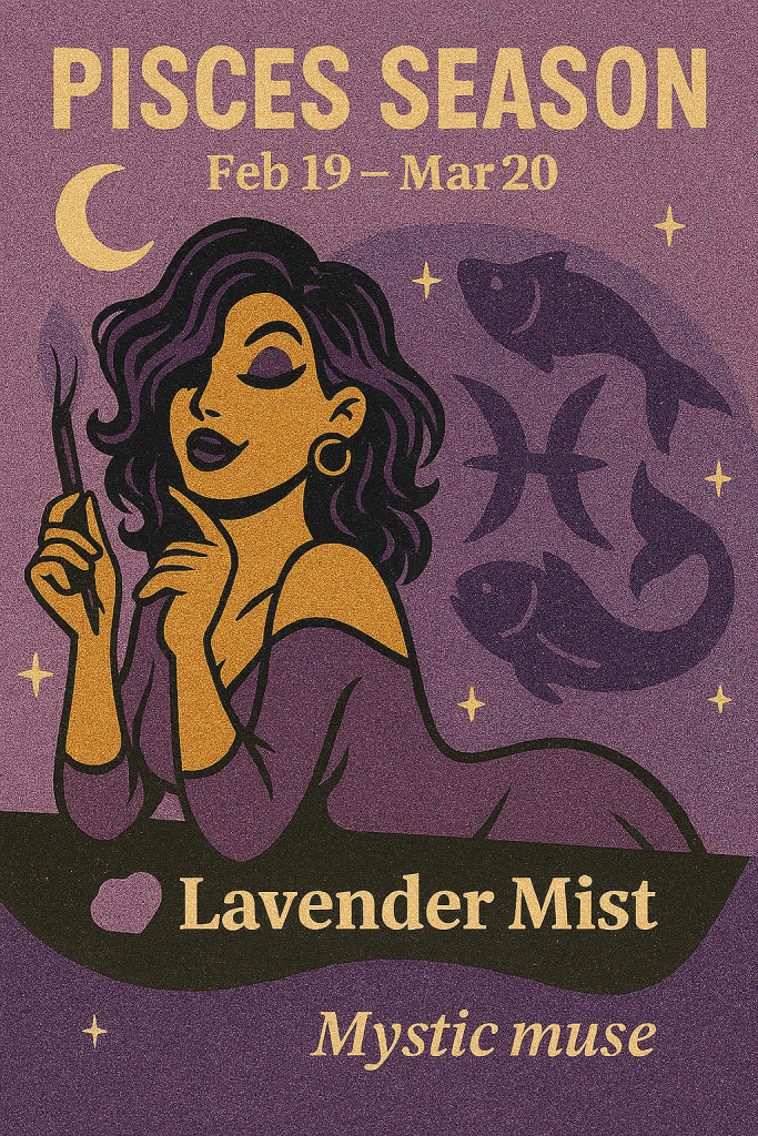 Hello Pisces season. This is the season of soft rebellion, emotional altars, and intuitive magic. Pisces season is the universes’ permission slip to drift, dissolve, and reemerge as something more enchanted. This is my birthday month so we’re going to fuse mystic muse mode. Full of lavender foam, glittery intuition, and all the cosmic softness I can carry. Pisces isn’t just a zodiac sign. It’s a mood. A portal. A creative escape hatch. A permission to feel everything and then alchemize it into life.