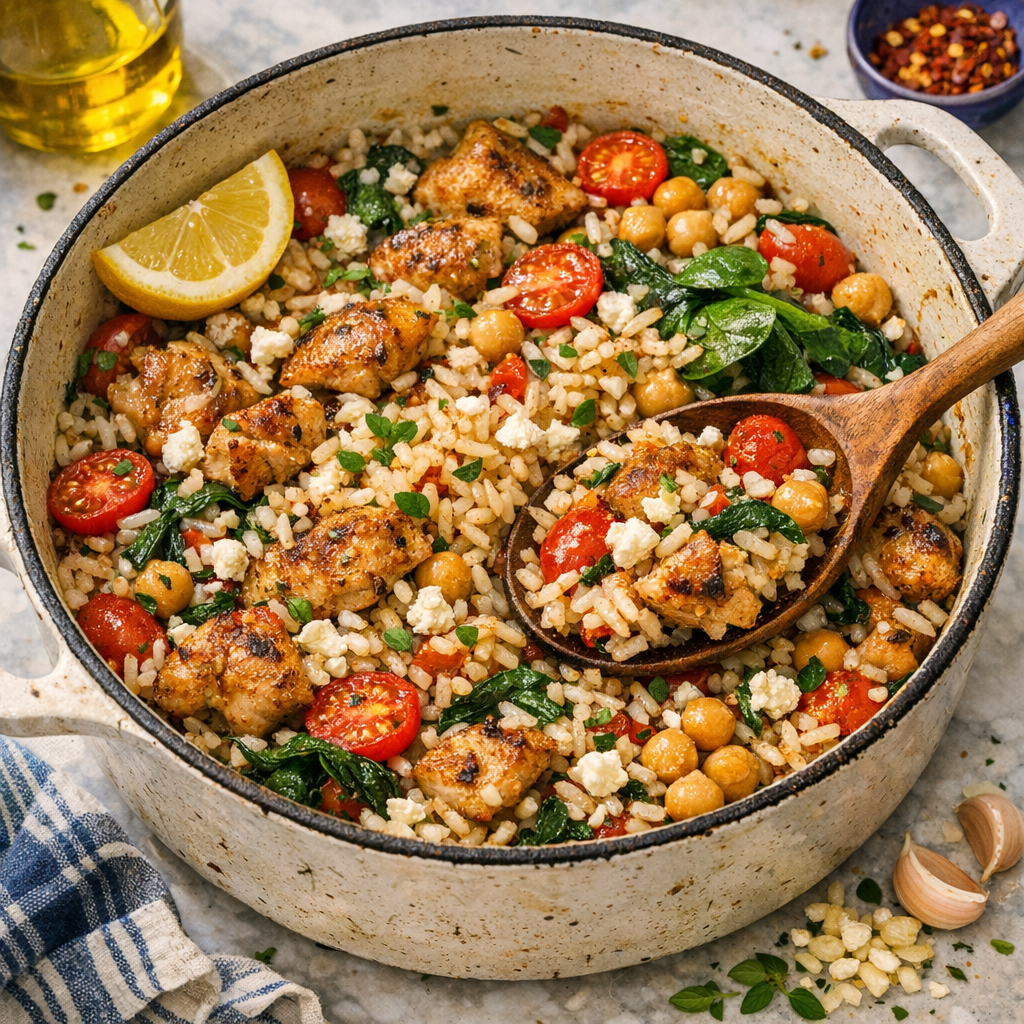 - Finish with brightness. Squeeze in fresh lemon juice and sprinkle diced feta over the top. Stir gently so the feta melts slightly into the rice.