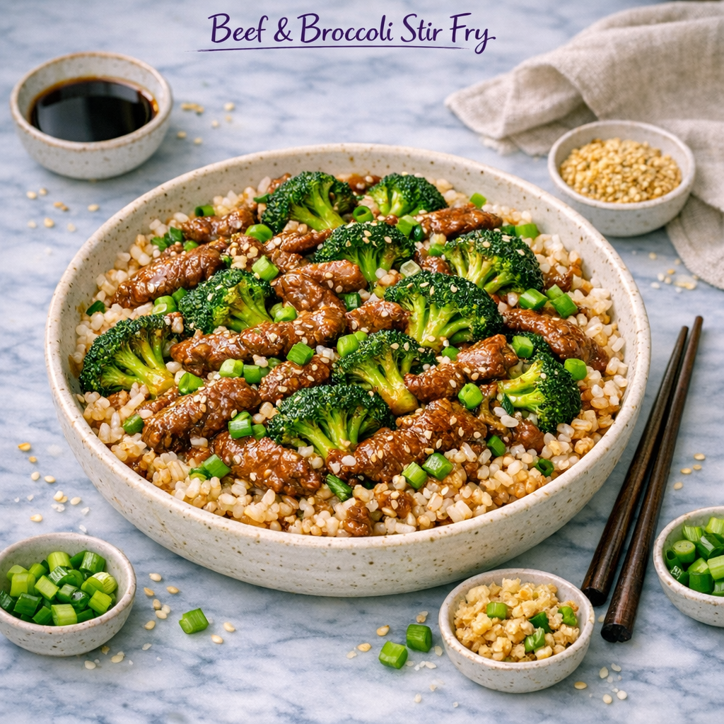 7. Combine. Return broccoli to the pan, toss with beef, and cook 1–2 minutes until everything is coated and hot.
